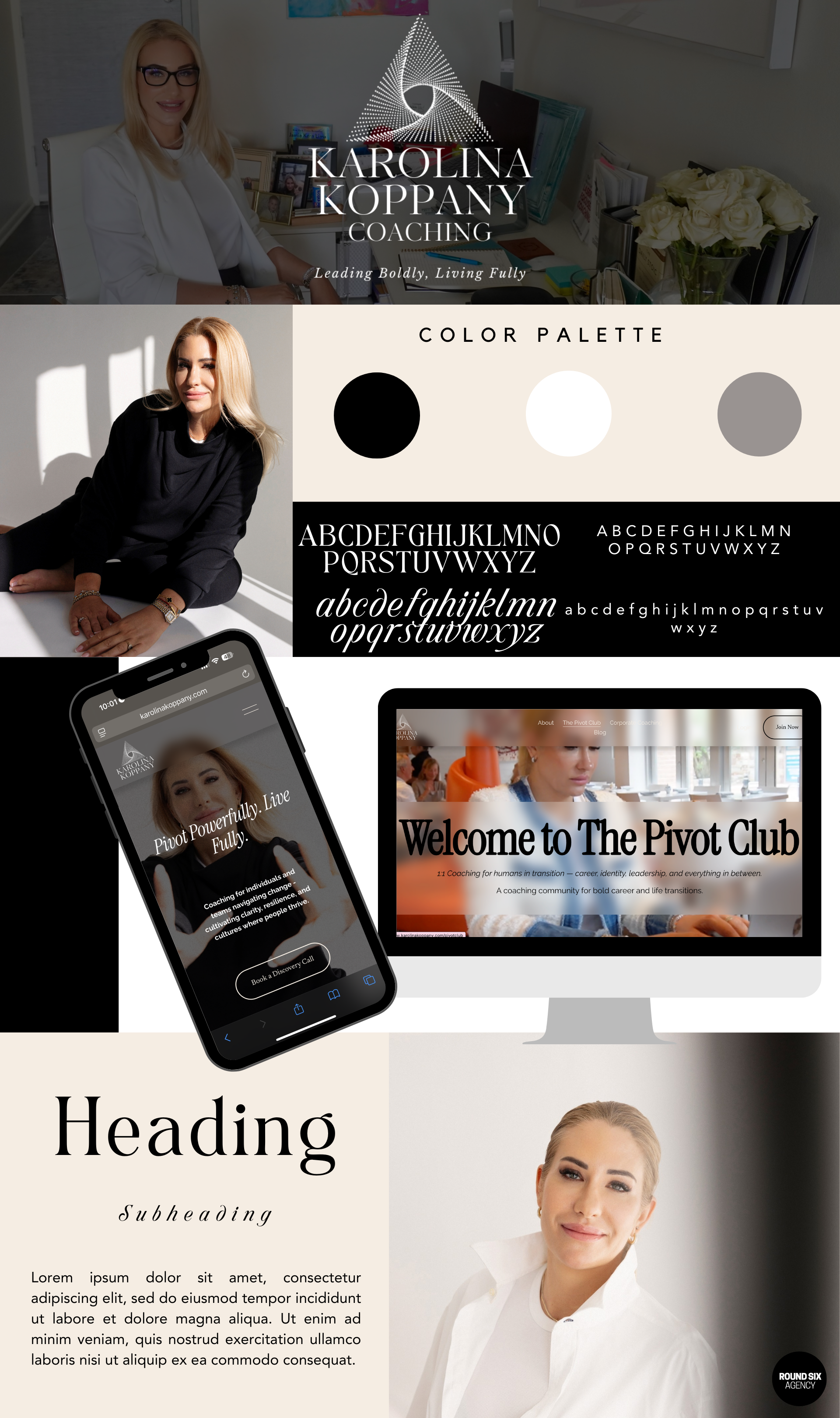 Karolina Koppany is an executive and personal development coach who helps high-performing leaders make intentional life and career pivots. She approached Round Six Agency to transform her coaching practice into a clear, elevated, and scalable founder-led brand.